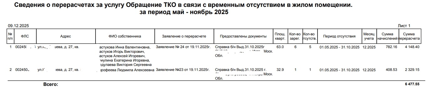 список временно отсутствующих по ТКО, вместо собственника печатается список отсутсвующих |